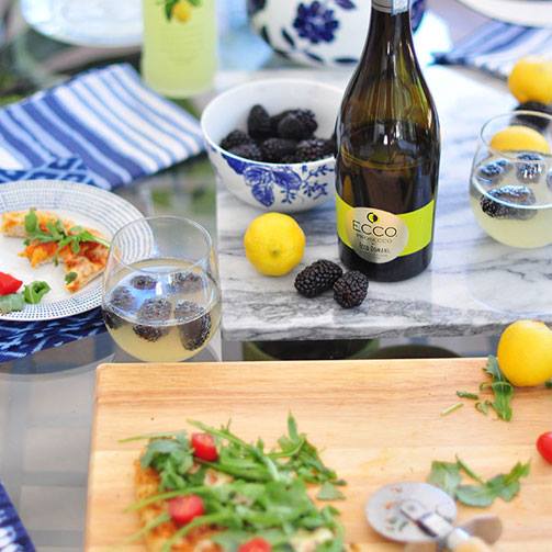 Ecco Domani Style Society blogger Love Maegan creates an Ecco Prosecco cocktail using muddled blackberries, and pairs it with an upgraded pizza featuring arugula and fresh tomato toppers: bit.ly/LMPatioPizza