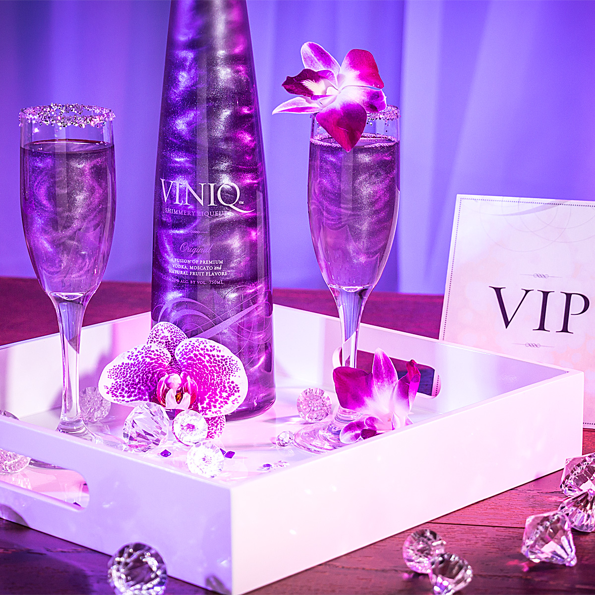 Soak up that shimmer with a glass of Shimmery Citrus Punch made with Viniq Ruby (750 ml), pineapple vodka (12 oz), sweet N sour (52 oz) and pineapple juice (33.8 oz).